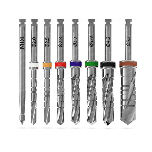 • Drills diameter: 1.9mm - Marking Drill / 2.0mm - Pilot / 2.5mm  /2.8mm / 3.2mm / 3.65mm / 4.2mm / 5.2mm