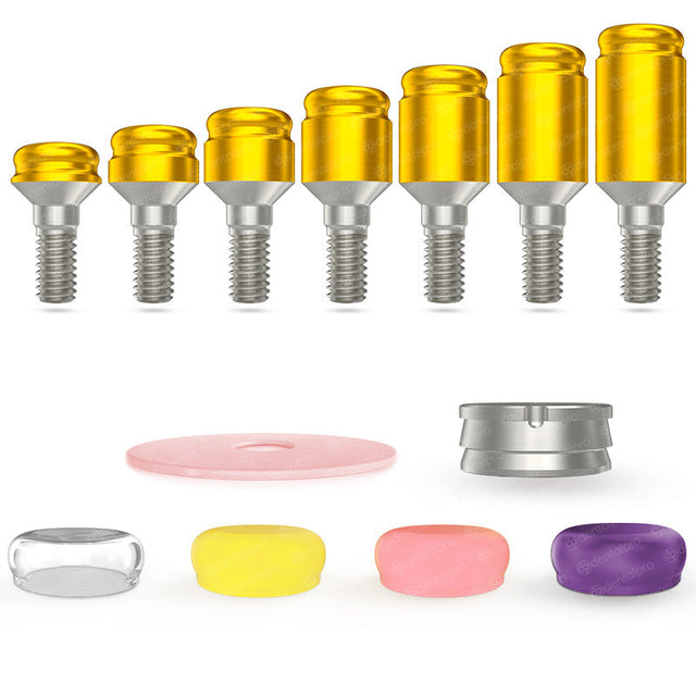 - Estética mejorada: el recubrimiento de nitruro de titanio de color dorado crea un tono cálido en la encía.